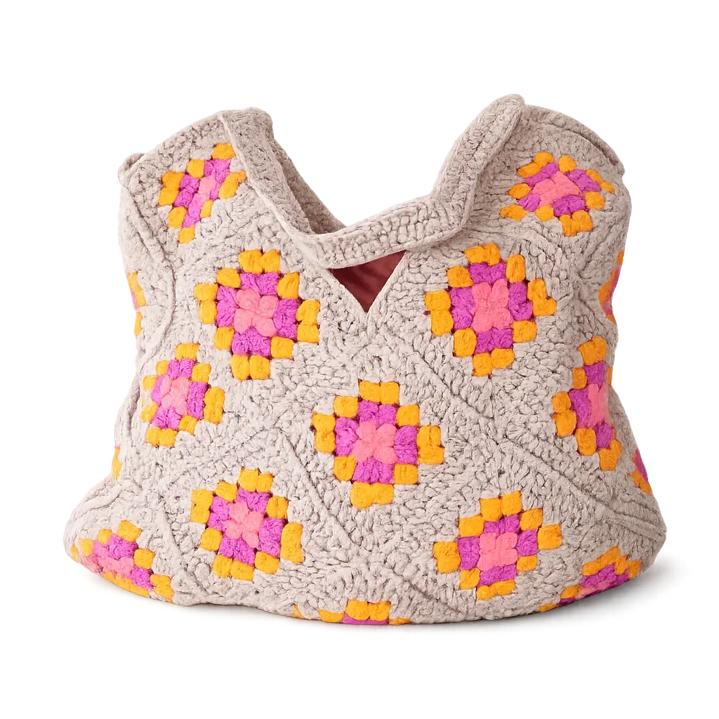 Deze handgemaakte gehaakte granny tas is perfect voor kleine boodschappen en dagelijkse momenten. De tas is dun, licht en flexibel, waardoor je hem makkelijk meeneemt en prettig draagt. Door het gebruik van klassieke granny squares krijgt de tas een speelse en ambachtelijke uitstraling. Elke tas wordt met de hand gehaakt en dat zie je terug in de details. Geen twee tassen zijn hetzelfde, wat elke tas uniek maakt.