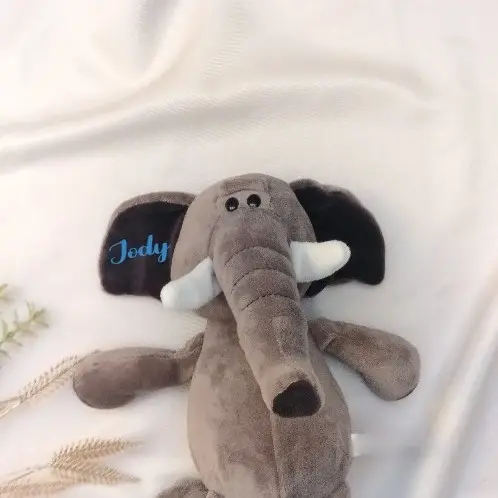 Onder deze zachte olifant knuffel met naam ontstaat meteen een warm en persoonlijk gevoel. De grote oren en de lieve uitstraling maken dit knuffeldier ideaal voor elk kind. De olifant voelt zacht aan en past perfect bij kinderen die graag spelen met knuffels of ander speelgoed met naam. De knuffel is gepersonaliseerd en daardoor een uniek cadeau voor elke gelegenheid.