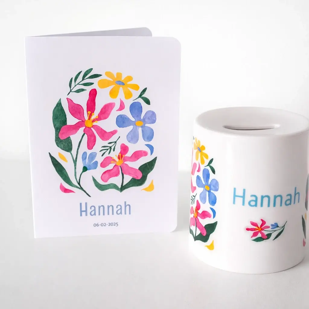 Een spaarpot met naam is een persoonlijk en gepersonaliseerd cadeau dat meteen opvalt. Het ontwerp wordt voor elk kind met zorg samengesteld, waardoor de spaarpot een unieke uitstraling krijgt. Door de naam toe te voegen ontstaat een blijvende herinnering die mooi staat in elke baby- of kinderkamer. Deze spaarpot past bij elk moment en vormt een waardevol cadeau dat jarenlang meegaat. Het is een bijzondere manier om sparen leuk te maken en kinderen te motiveren om hun eerste muntjes te verzamelen.